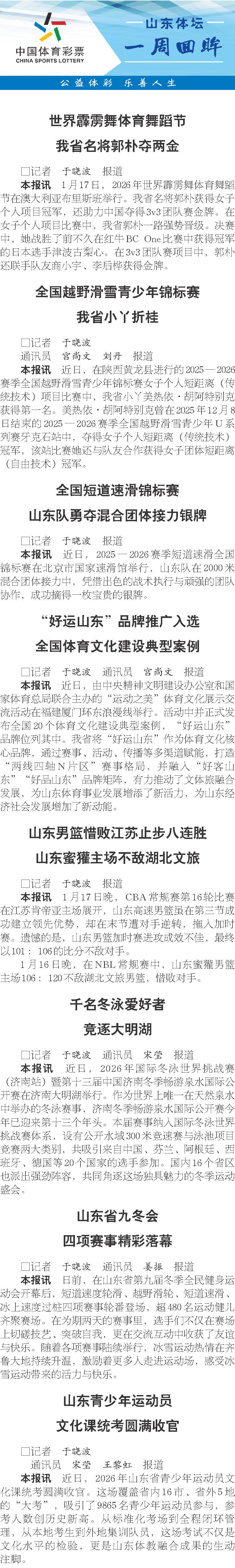山东体坛一周回眸