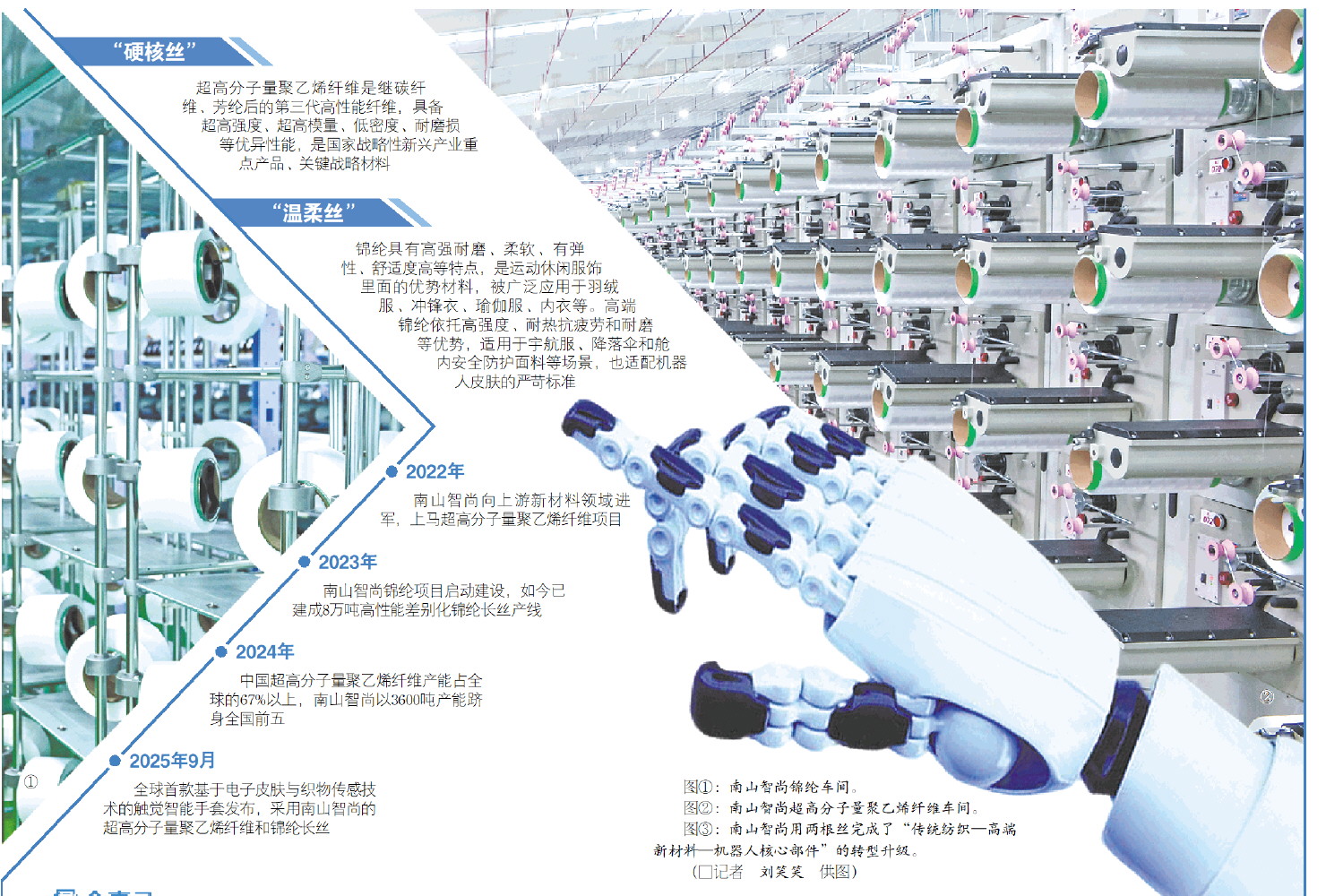 图③:南山智尚用两根丝完成了“传统纺织—高端新材料—机器人核心部件”的转型升级。