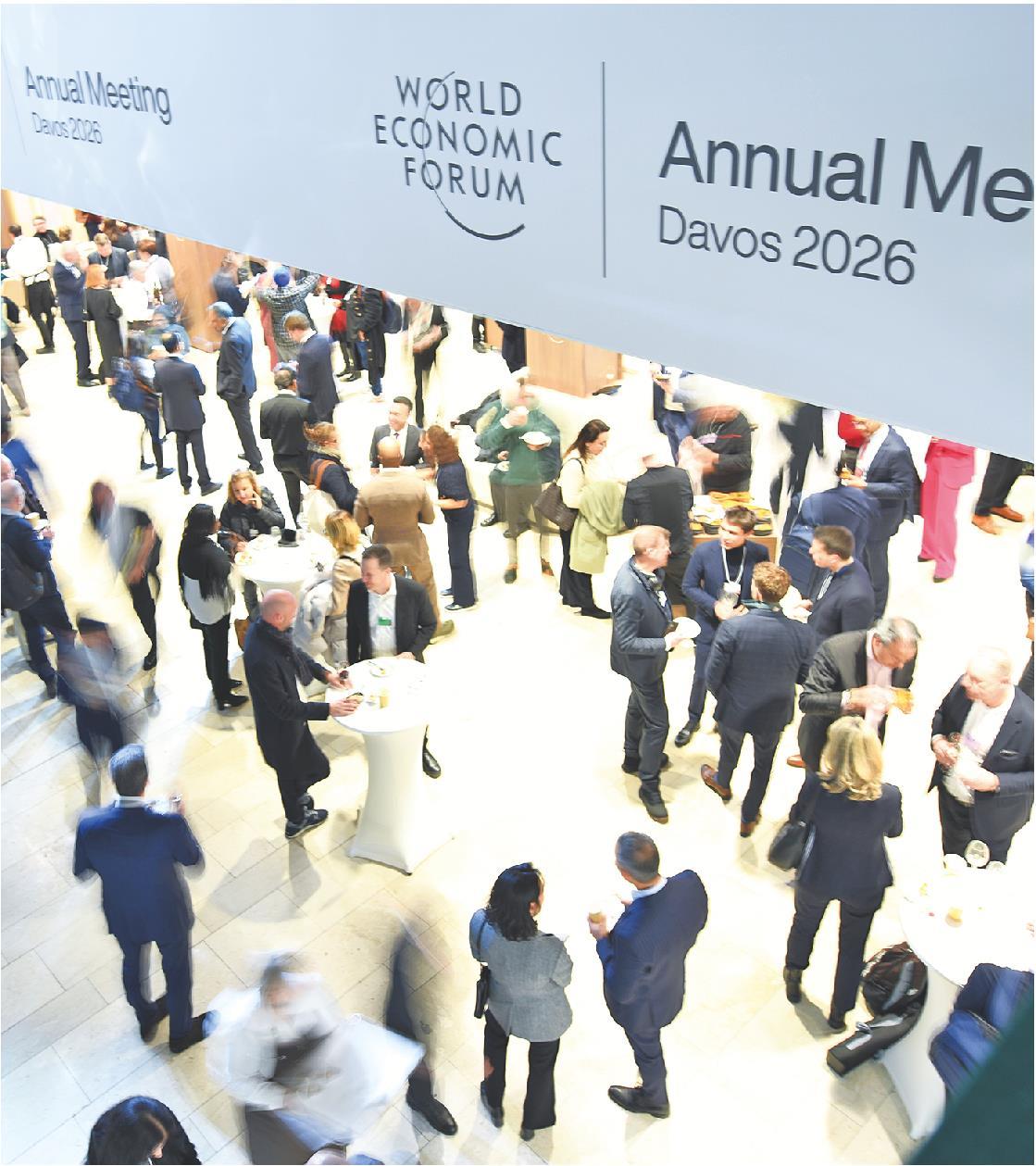 1月19日晚,在瑞士达沃斯,人们参加世界经济论坛2026年年会欢迎招待会。当日,世界经济论坛2026年年会在瑞士达沃斯拉开帷幕。本届年会主题为“对话的精神”,旨在呼吁国际社会在复杂多变的国际局势下通过建设性交流重建信任,共同应对全球性挑战。