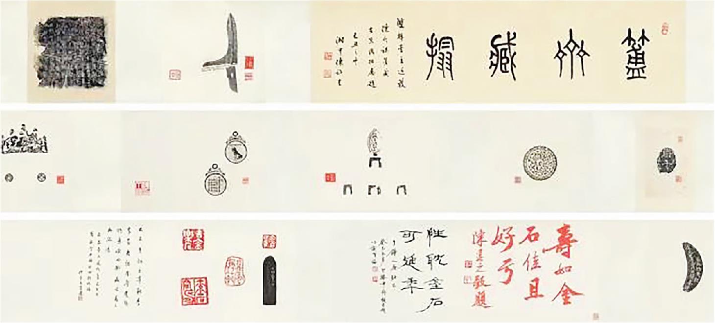 在藏古方面,陈介祺收藏丰富、冠于中土。举凡钟鼎彝器、金戈铁剑、镜鉴钱币、圭璧环璋、碑版造像、经幢志石、陶文玺印、封泥铭范、瓦甓宫当与宋元翰墨等,无所不收,无所不富,无所不精;藏品多达两万余件,俨然是一座规模宏大的金石博物馆。