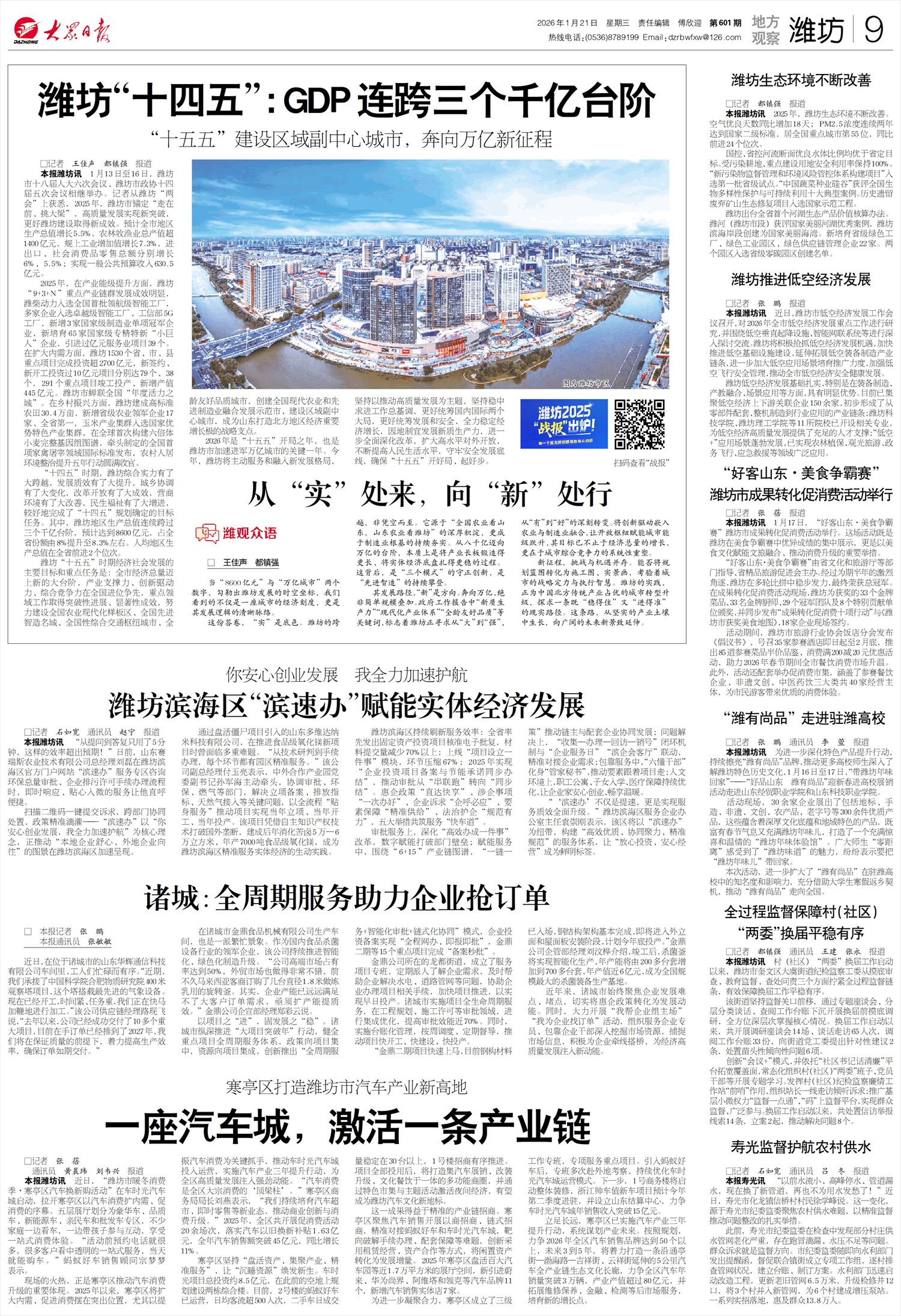 潍坊“十四五”:GDP连跨三个千亿台阶