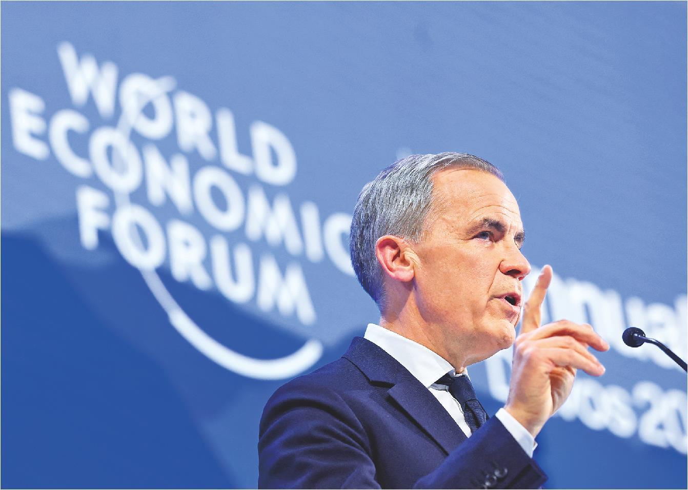 1月20日,加拿大总理卡尼在瑞士达沃斯举行的世界经济论坛2026年年会上发表演讲。