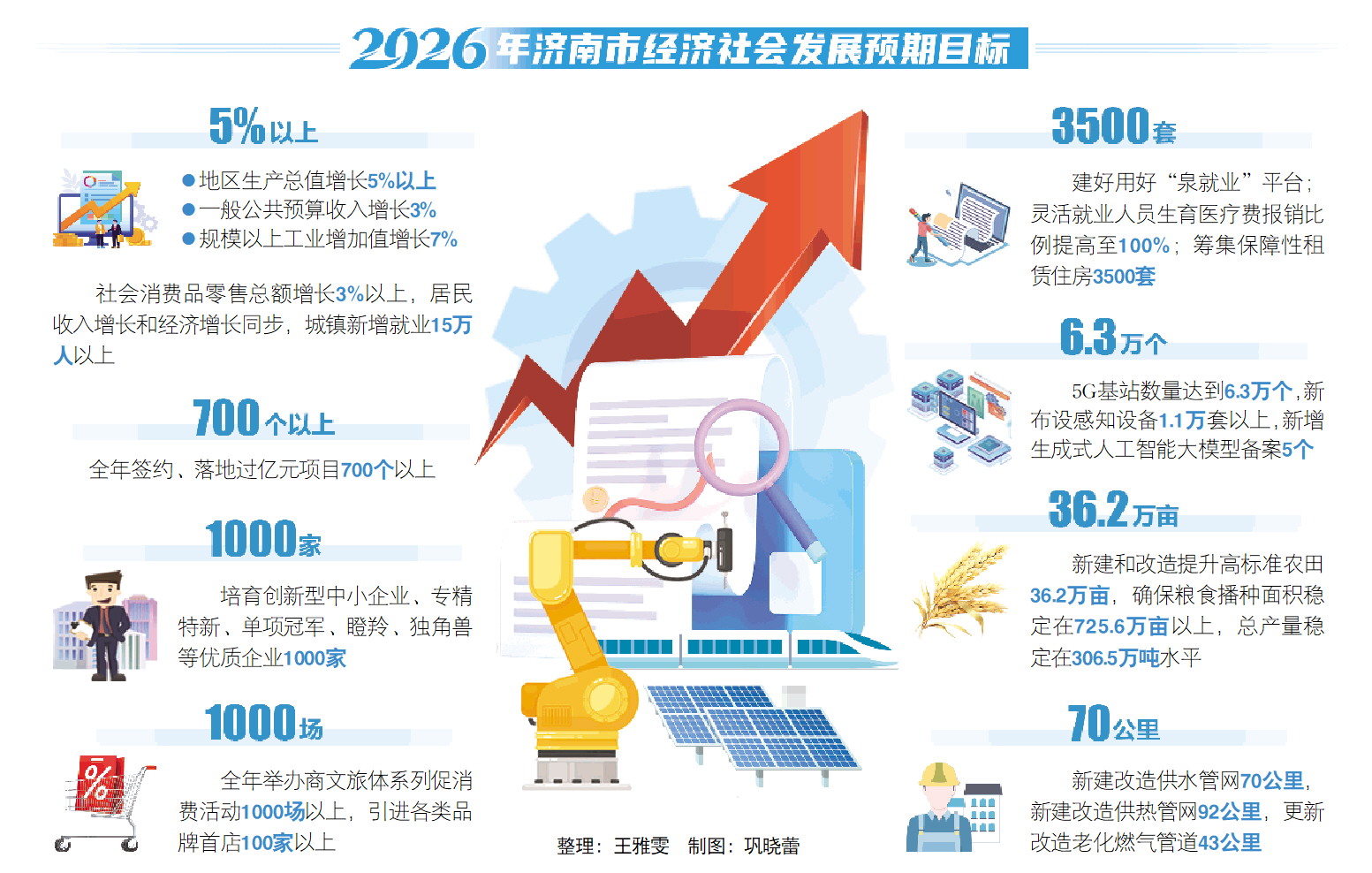 1月19日开幕的济南市第十八届人民代表大会第五次会议上,政府工作报告将“聚力强化内需主导作用,推动经济向上向好”作为2026年十项重点工作之首。着力点是全面激活消费市场潜力、有效推进投资量稳质升、加力发展壮大民营经济。