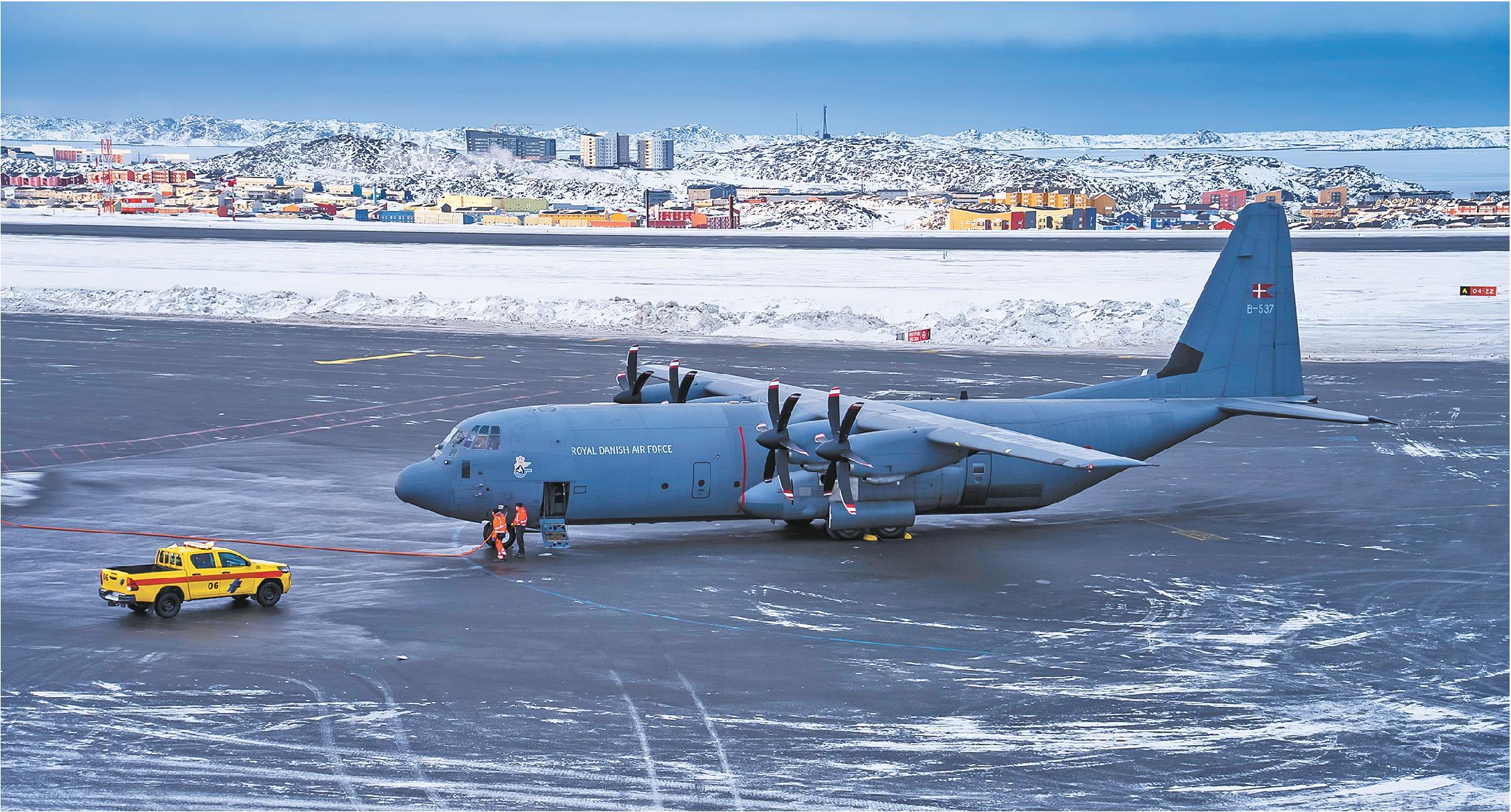 1月15日,在丹麦自治领地格陵兰岛首府努克机场拍摄的一架丹麦空军“超级大力神”运输机。