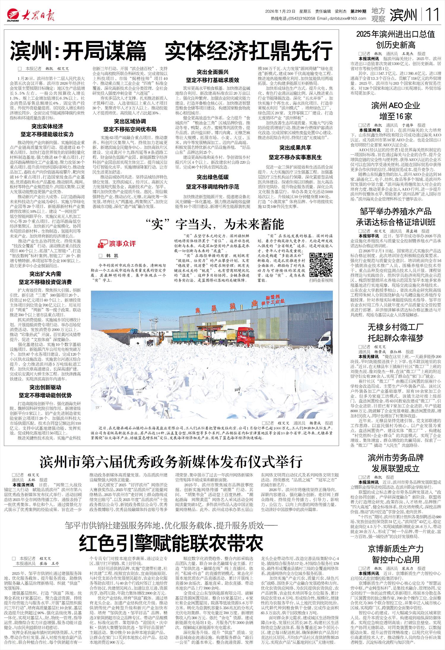 滨州:开局谋篇 实体经济扛鼎先行