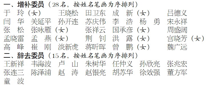中国人民政治协商会议第十三届山东省委员会增补委员、辞去委员名单
