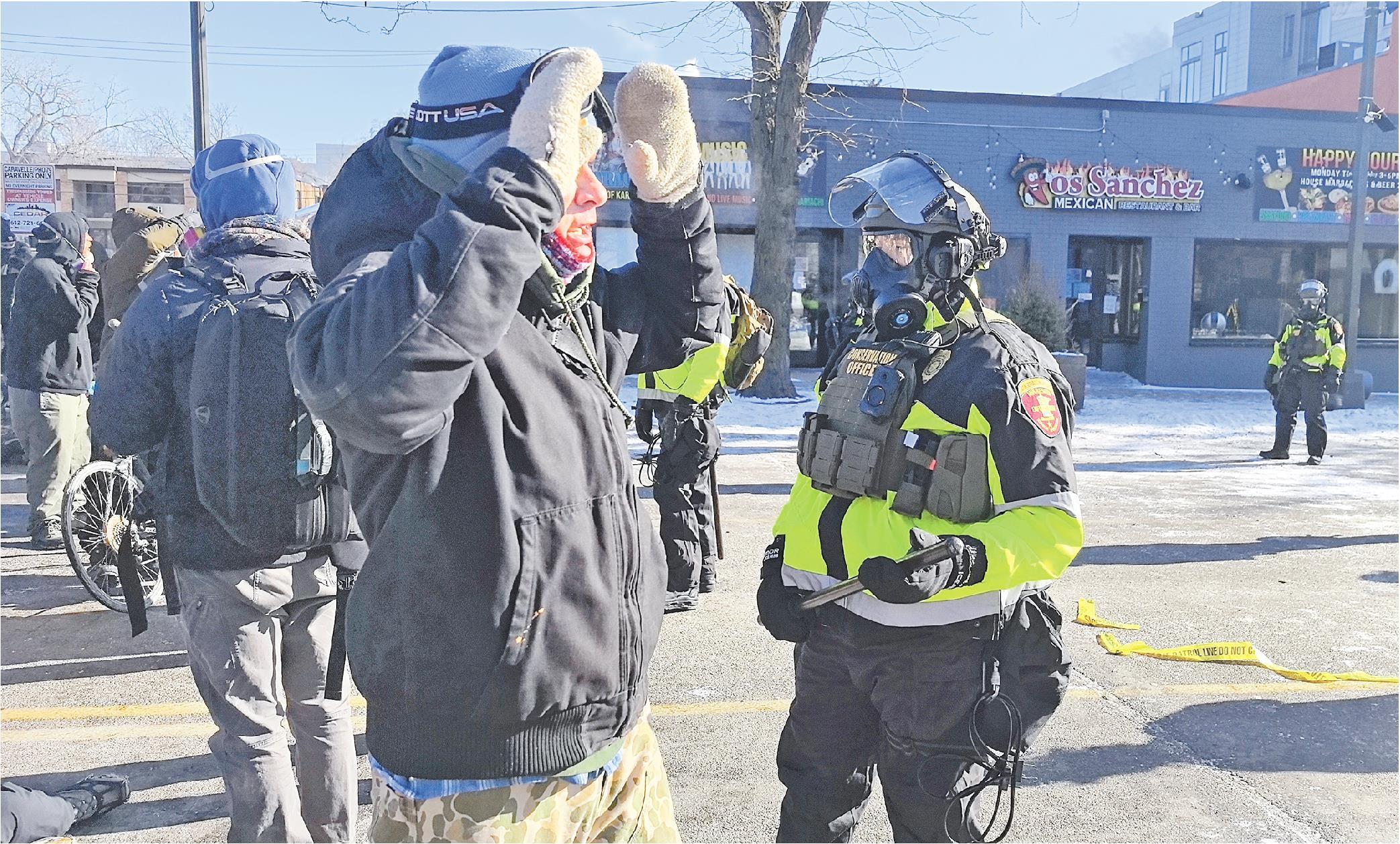 1月24日,美国明尼苏达州明尼阿波利斯市拍摄的示威抗议现场。