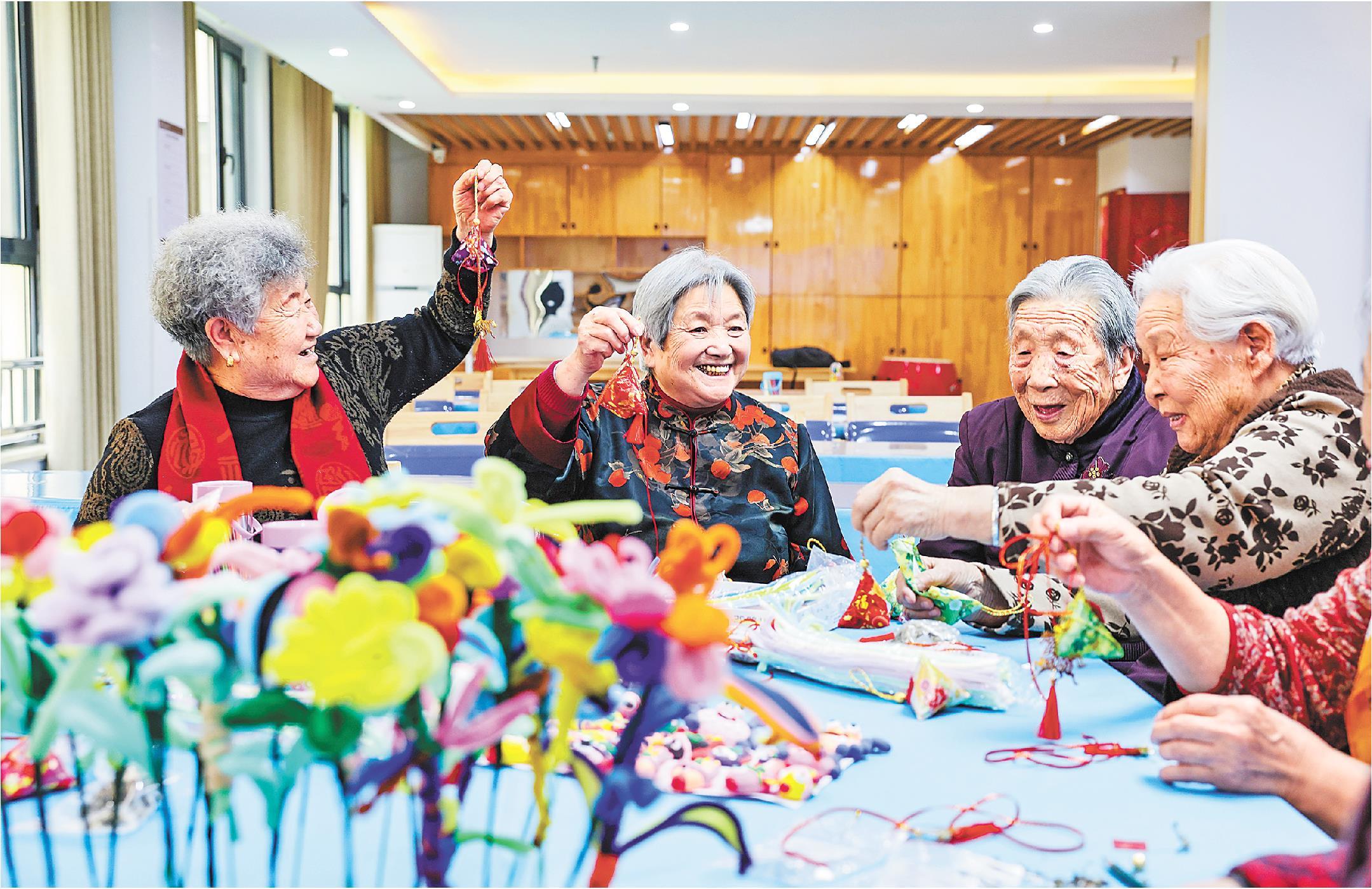 近日,在乐陵市德乐怡嘉长者公寓,老人们在开心地制作福袋。(□通讯员 贾鹏 记者 徐付彪 报道)