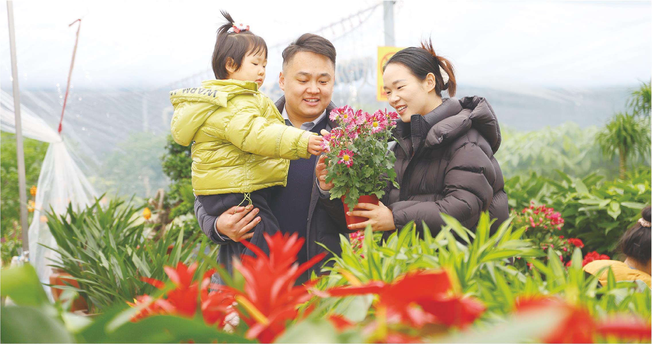 1月25日,在聊城市茌平区茌山花卉中心,彭先生一家正在选购年宵花卉。