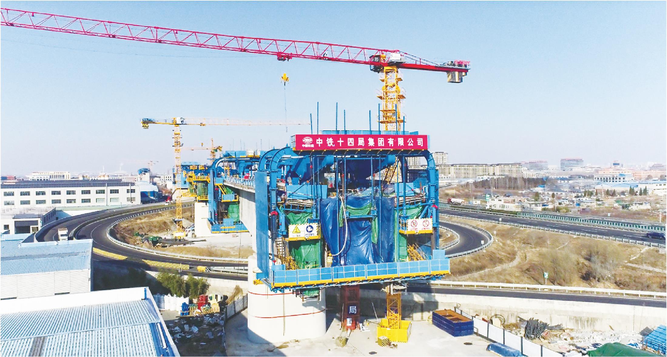 目前,潍宿高铁最长标段建设有序推进,临沂祊河特大桥跨京沪高速匝道连续梁梁体施工进展过半。