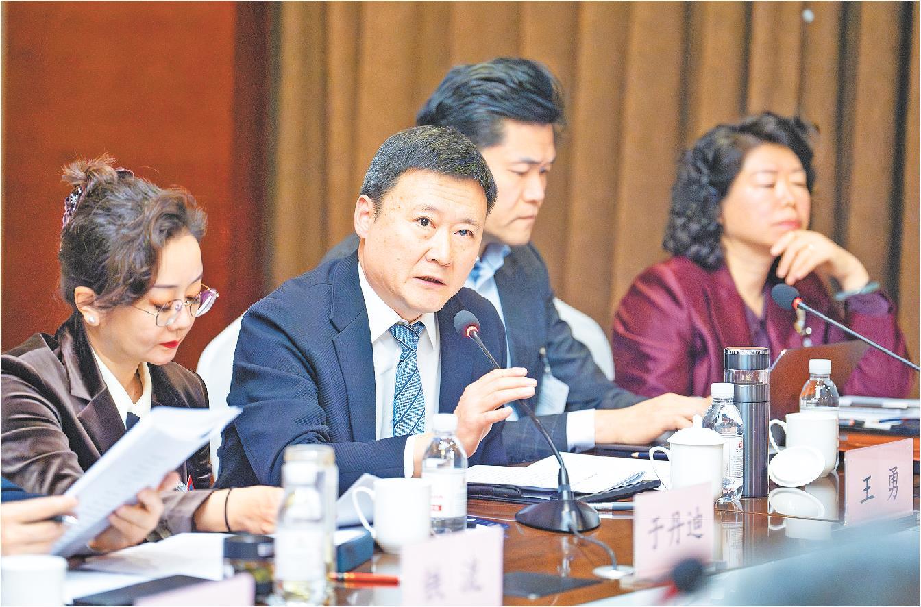 1月27日,王勇(左二)委员在政协小组会议上,围绕推动我省艺术与体育产业融合发展、打造消费新动能提出建议。