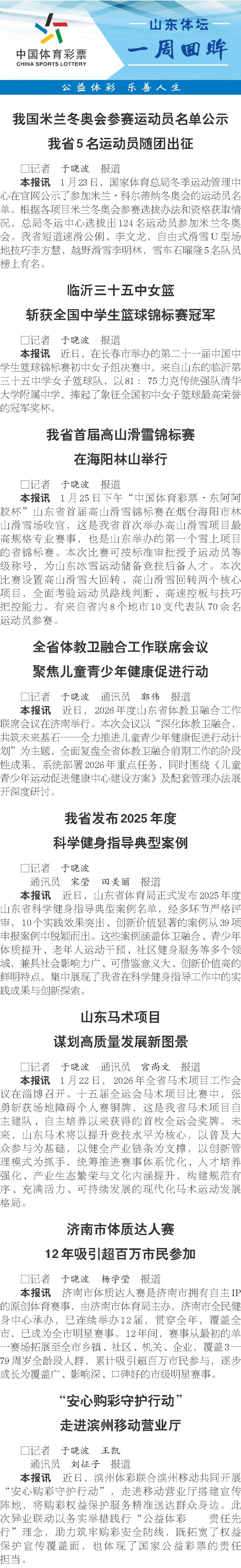 山东体坛一周回眸