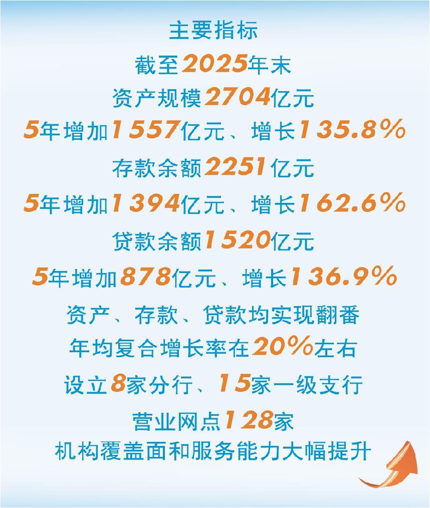 济宁银行坚守本源、专注主业,紧紧围绕济宁市确定的“一个万亿、五个倍增”战略目标和工业经济“头号工程”,扎实做好金融“五篇大文章”,连续5年新增贷款过百亿元,以源源不断的金融活水,助力地方经济向上攀登、向新而进、向绿而行。