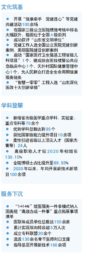 一项项重点项目落地生根,一个个发展蓝图变为现实,山一大二附院紧跟国家战略与群众需求,不断拓展医疗服务版图,构筑起优质医疗新高地。而这一切的背后,离不开医院在人才与学科建设领域的高位谋划、高点定位。