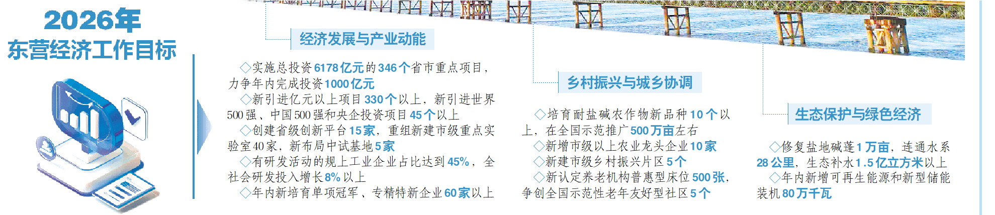 渤海之滨,大潮奔涌;黄河尾闾,气象一新。2026年伊始,东营市以“起步即冲刺”的奋进之姿,在产业革新、城乡融合与生态建设的多维格局中全面发力,奋力夺取“十五五”开局之年首季“开门红”。