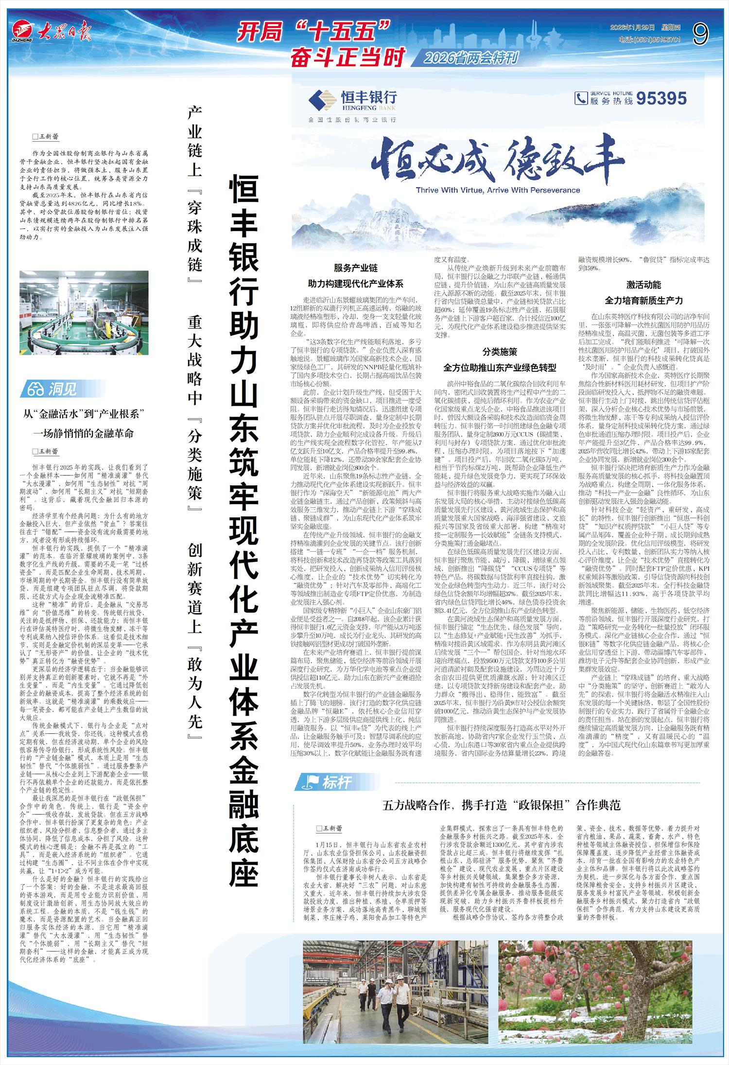恒丰银行助力山东筑牢现代化产业体系金融底座