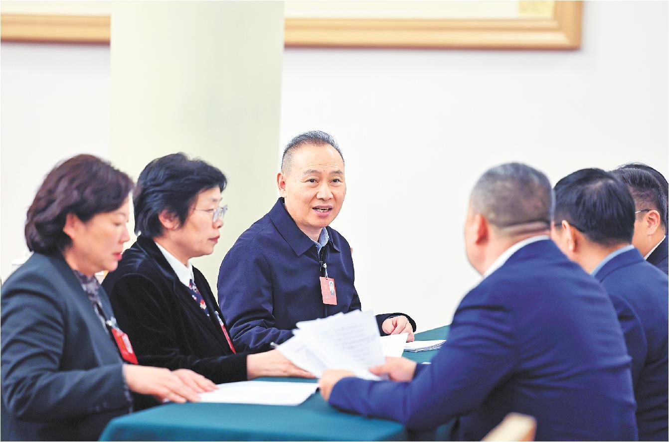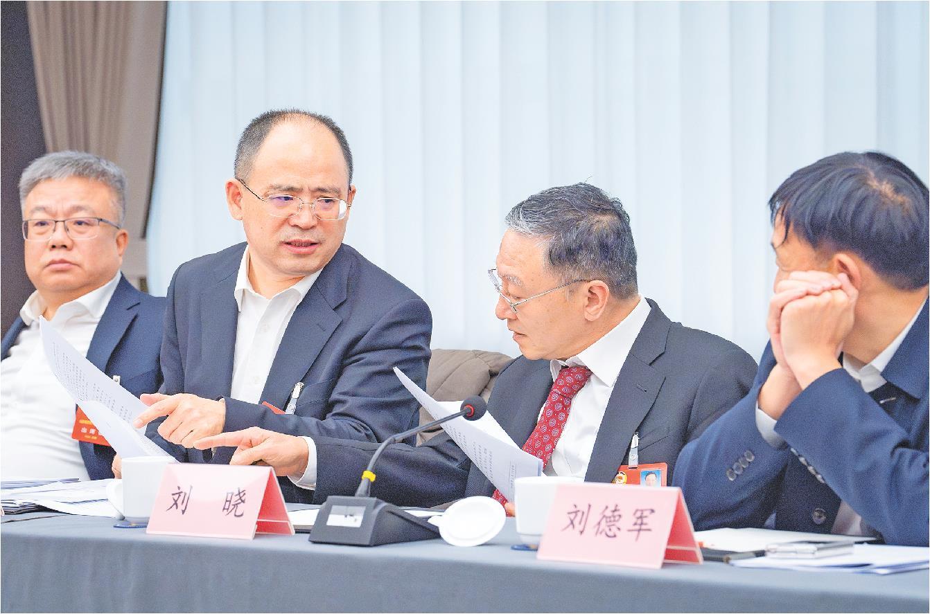 在1月29日的政协小组会议上,肖龙沧(左二)、刘晓(左三)、刘德军(左四)等委员,围绕省高级人民法院工作报告中的“深入开展优化营商环境创新提升行动,促进有效市场和有为政府更好结合”等相关内容展开讨论。