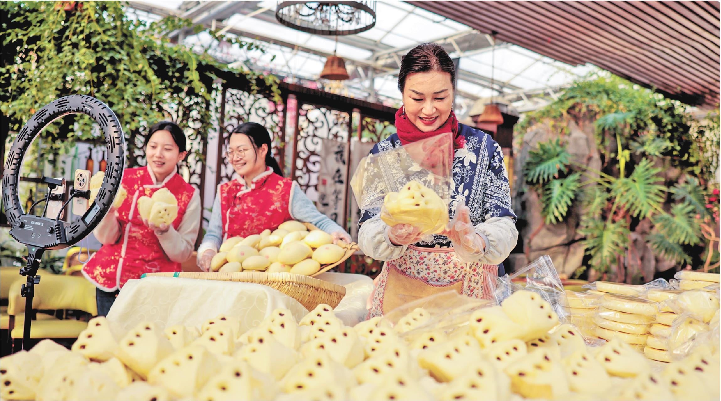近年来,荣成妇联依托巾帼创客圆梦基地,组织妇女参与直播培训和社群团购,引领花饽饽产业通过线上社群带货,线下大赛展销等模式,推动“胶东花饽饽”通过电商渠道走向全国各地,让老手艺“蒸”出致富路。