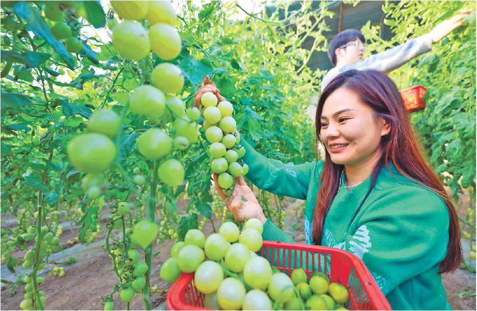 近日,在无棣县埕口镇塘坊村种植大棚内,游客正在采摘小西红柿。塘坊村“两委”2025年利用省派工作队扶持资金,对村内闲置大棚进行高标准升级改造,为村集体经济壮大和发展打下了坚实基础。据介绍,该村共种植了6个大棚,现在采摘价20元/公斤、批发价14元/公斤,以大棚产量1500公斤计算,每个大棚预计年收入2万余元。
