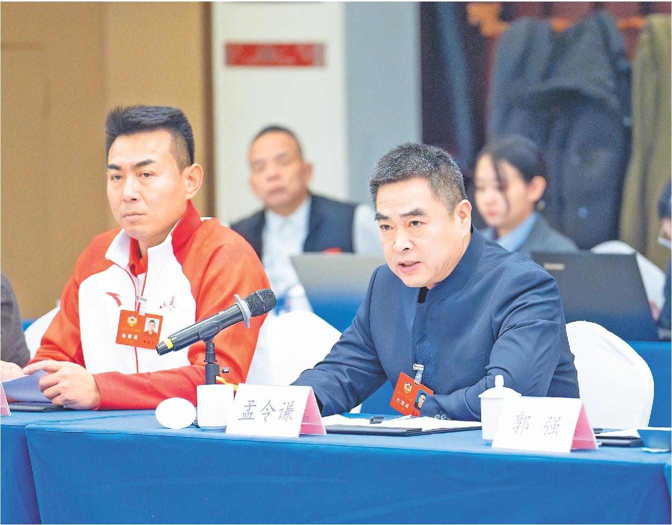 1月28日,孟令谦(右)委员在政协联组会议发言中建议,结合齐鲁文化基因解码利用工程,统筹推进古建筑类文物保护与活化利用。