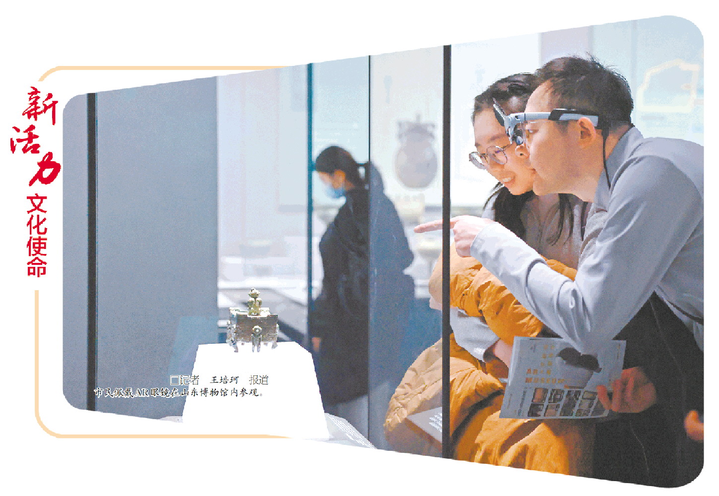 市民佩戴AR眼镜在山东博物馆内参观。