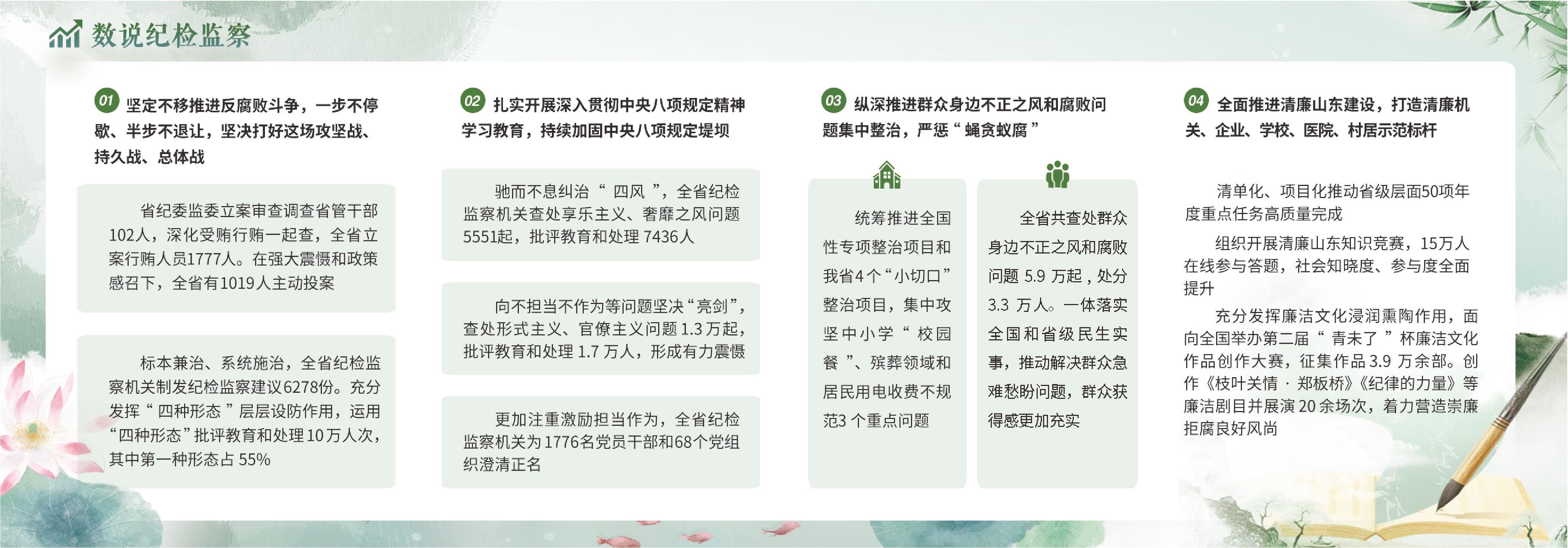 回眸2025年,全省各级纪检监察机关深入学习贯彻习近平新时代中国特色社会主义思想,认真落实二十届中央纪委四次全会和十二届省纪委四次全会部署,聚焦推进高质量发展,找准找实围绕中心、服务大局的切入点着力点,对标对表、忠实履职,以纪检监察工作高质量发展新进展新成效,让党员干部群众真切感受到正风反腐加力度、清风正气在身边。