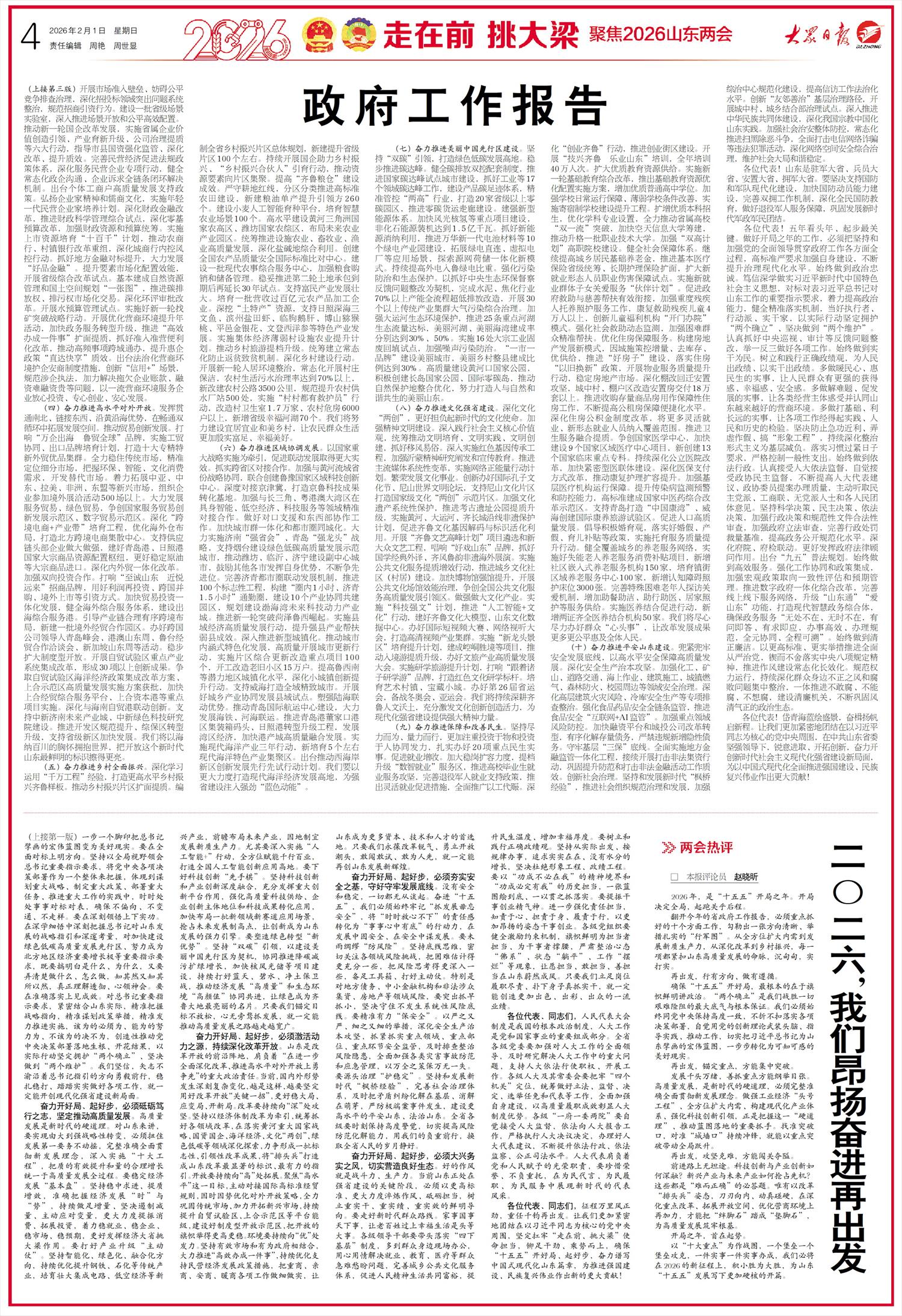-大众日报-04-走在前 挑大梁 聚焦2026山东两会