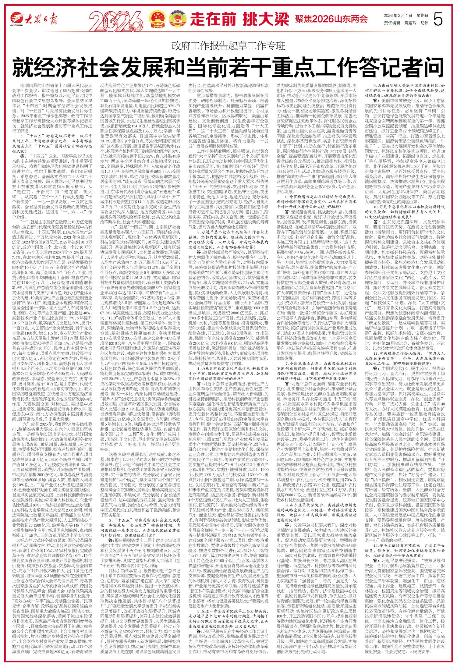 -大众日报-05-走在前 挑大梁 聚焦2026山东两会