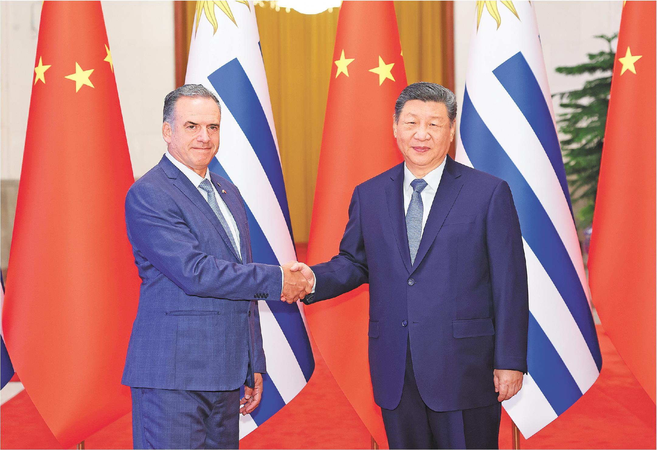 习近平强调,中乌两国要继续坚定支持彼此核心利益和重大关切,密切各层级、全方位友好交往,加强治国理政经验交流,不断深化战略互信。中共二十届四中全会通过“十五五”规划建议,为未来5年中国经济社会发展擘画蓝图,也为包括乌拉圭在内的各国提供更多机遇。双方要加强发展战略对接,深化经贸、金融、农牧业、基础设施建设、信息通信等合作,挖掘绿色发展、数字经济、人工智能、清洁能源等新兴领域合作潜力,推动经济增长转型升级。中国和乌拉圭人民有着天然亲近感,双方要持续深化文化、教育、体育、媒体、地方等交流,便利人员往来,促进民心相通。