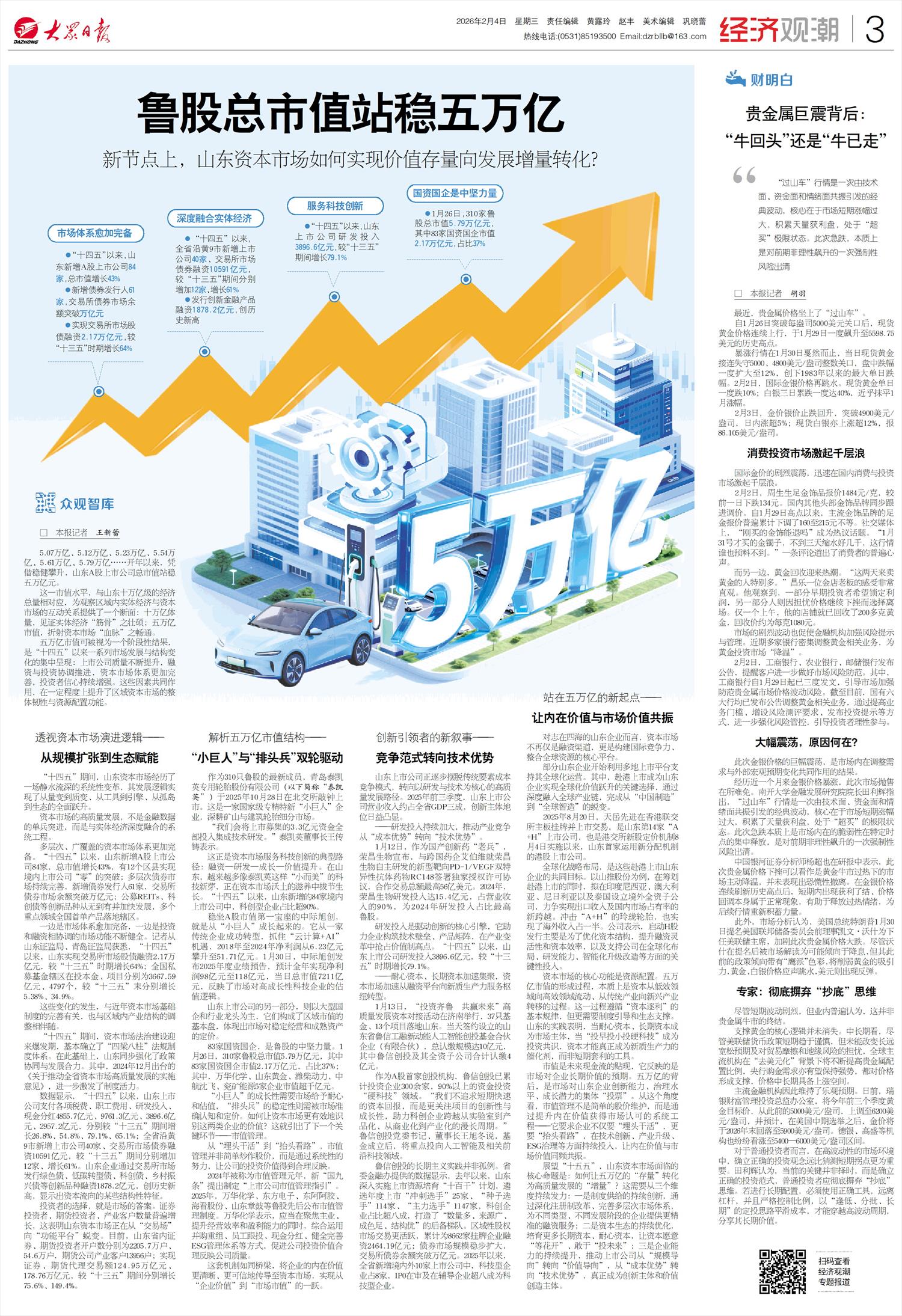 鲁股总市值站稳五万亿