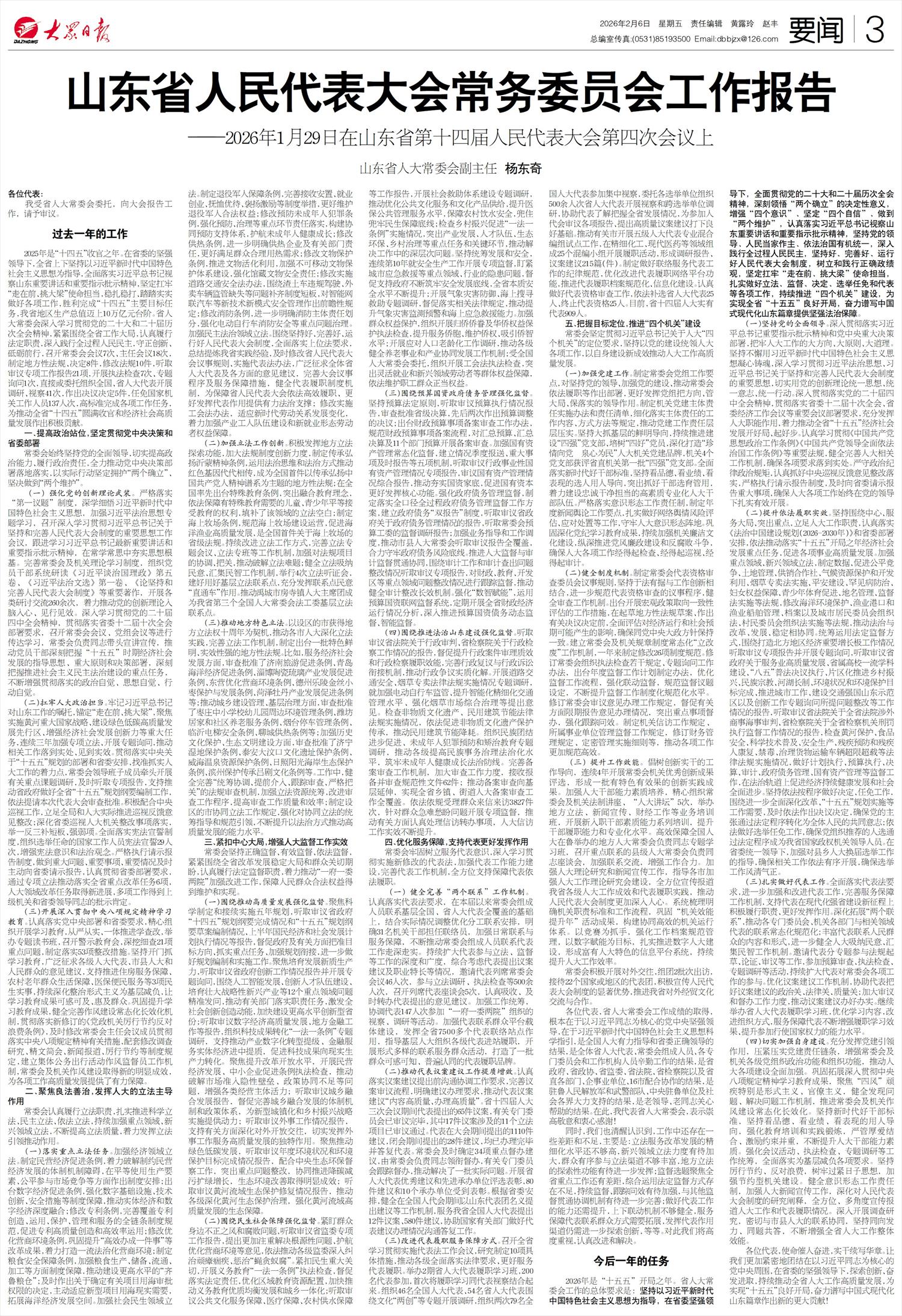 山东省人民代表大会常务委员会工作报告