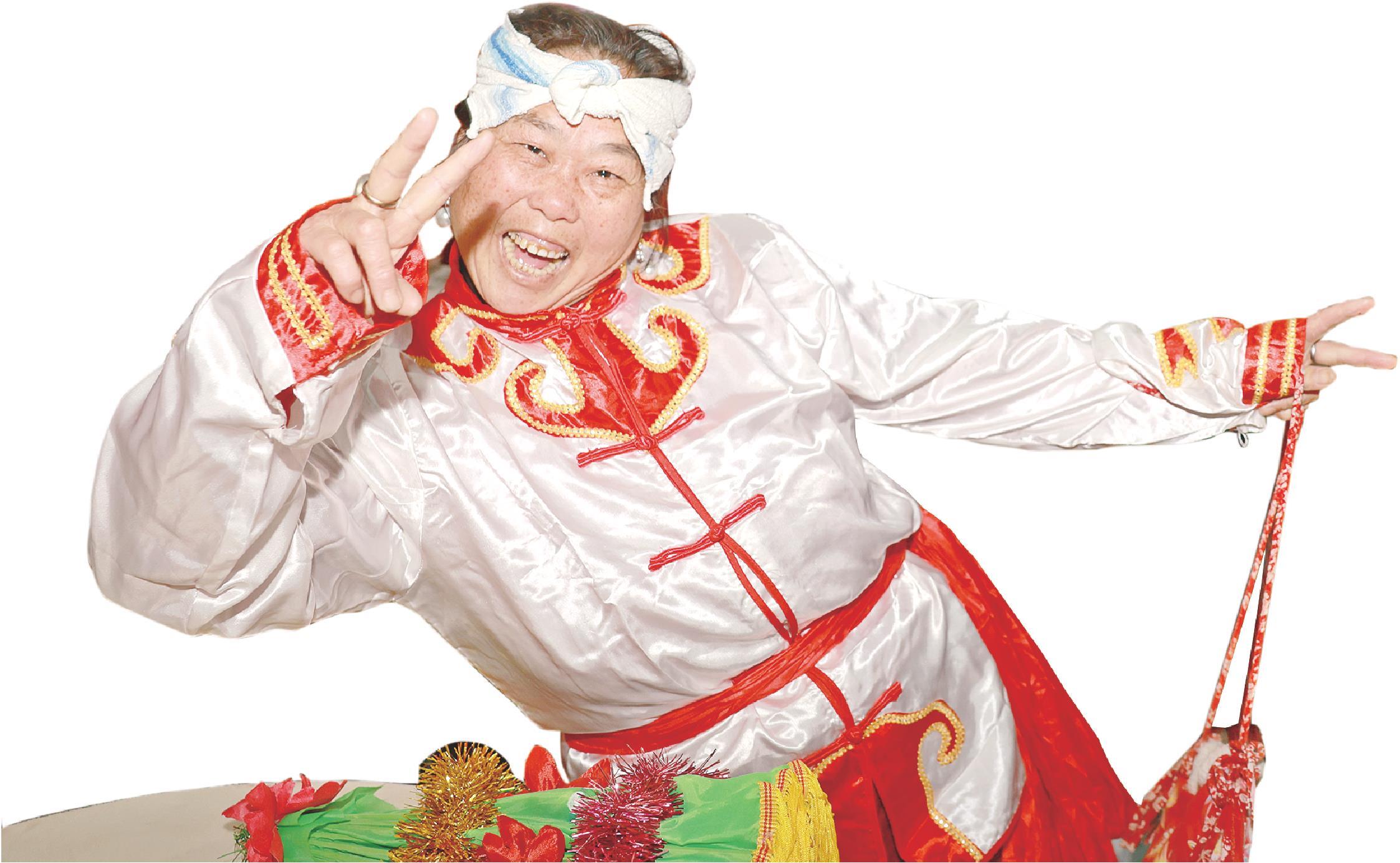 1月31日,来自贾寨镇王药包村的陈淑兰在耿店村晚海选现场拍照留念,她爱好文艺,参加过两届耿店村晚。