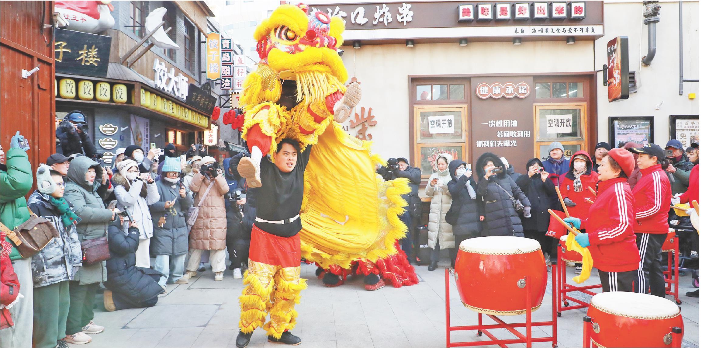 2月7日,青岛劈柴院非遗年货大集暨2026年市南区“非遗月”启动仪式举行,舞狮、民乐、戏曲、曲艺等节目上演。