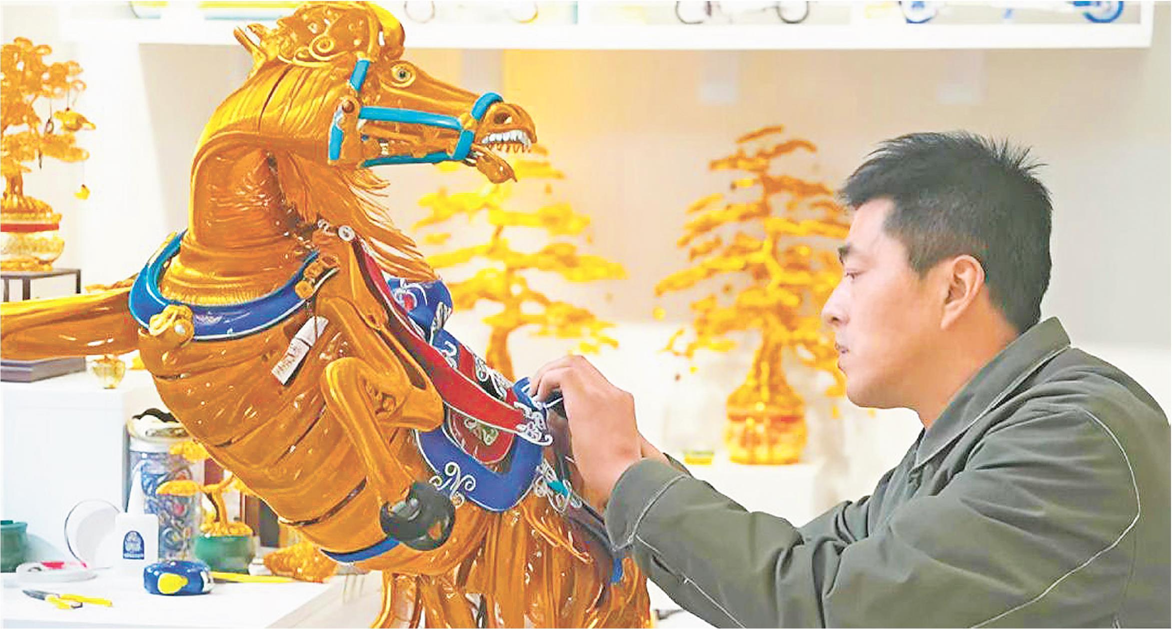 2月6日,在青州古城,手艺人杨光正在工作室用金属铝线创作马年主题工艺品。这匹骏马身姿舒展,威武霸气。