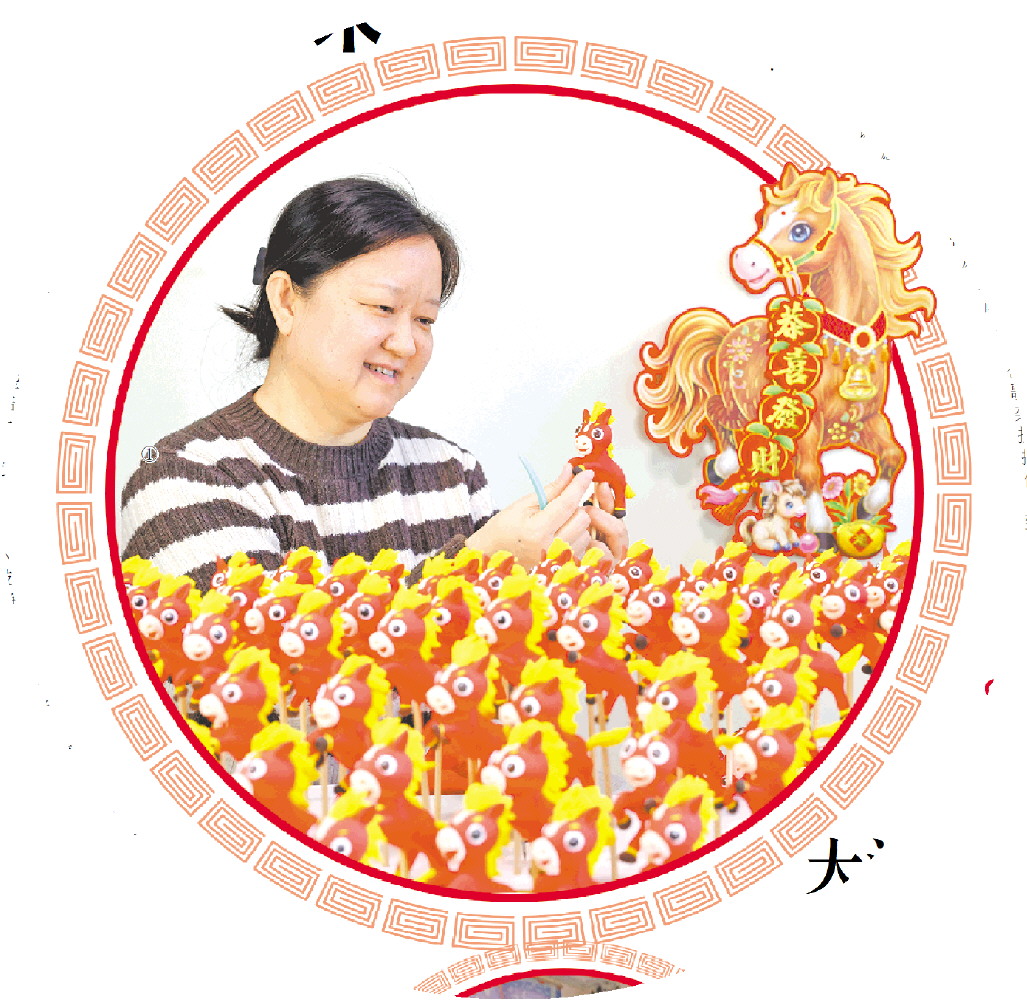 图①:2月8日,枣庄市市中区光明路街道,民间艺人张婷在家中创作面塑作品《“百马”迎春》。(□通讯员 吉喆 报道)