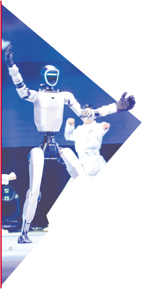图①:2月14日晚,2026山东省机器人春节晚会在济宁举办,珞石双臂机器人表演鼓乐合奏《万马奔腾》。