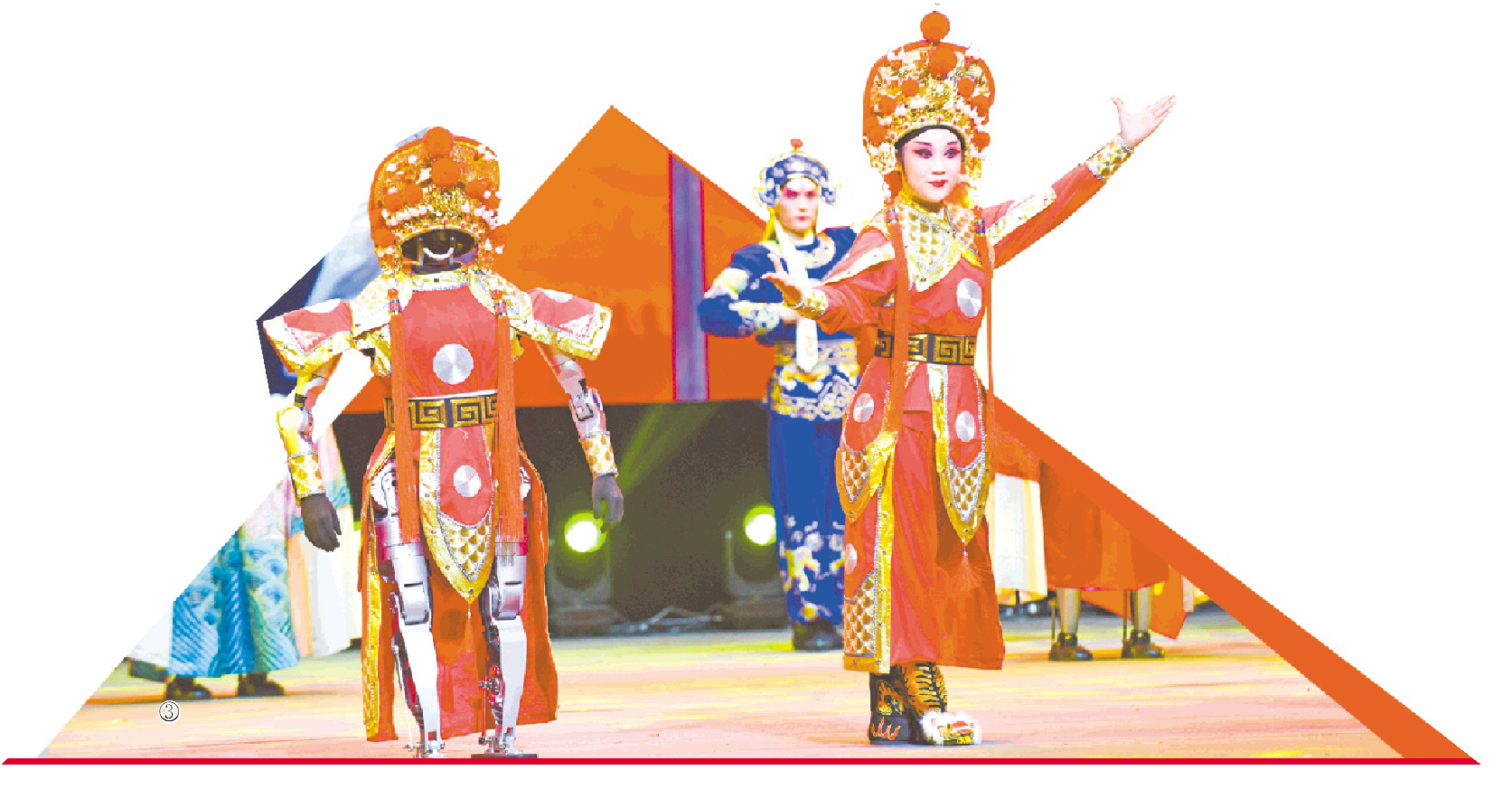 图③:戏曲联唱《人机戏曲串烧》节目中,机器人着戏服表演。