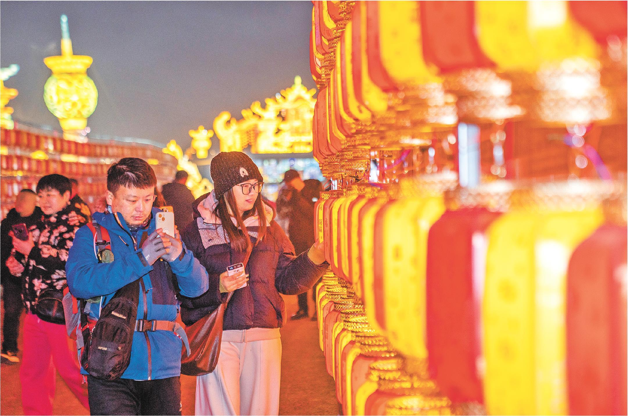 2月10日,第四十四届淄博花灯会“亮灯”仪式后,市民纷纷在美轮美奂的灯组前拍照“打卡”。