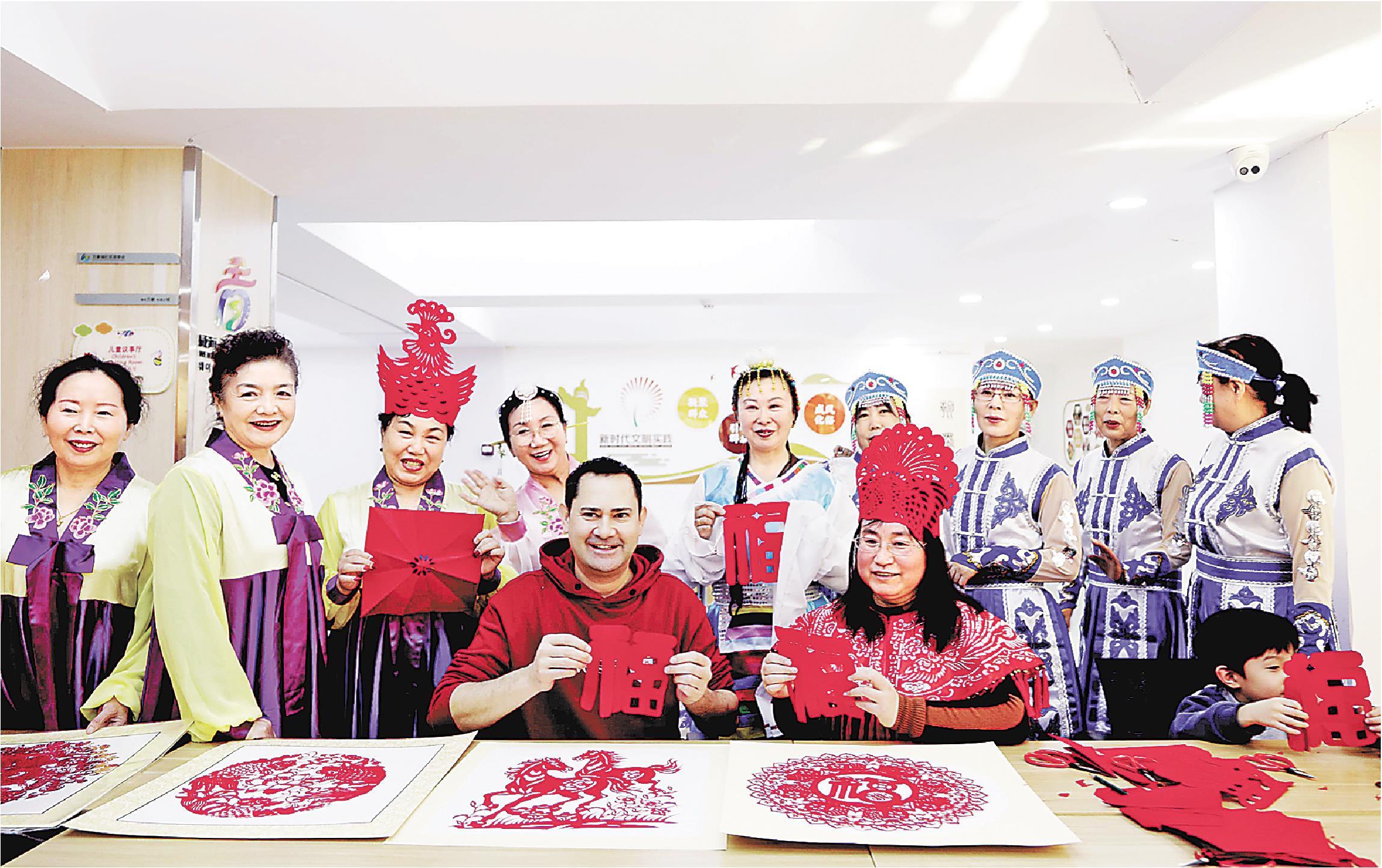 日前,威海经开区在皇冠街道万象城社区举办“万象沐春晖 四海一家亲”迎新春民俗文化互动活动。来自英国、韩国等国家的国际友人同各族居民欢聚一堂,沉浸式体验写春联、剪窗花、画国画等中国“非遗”,提前感受中国农历新年的魅力。