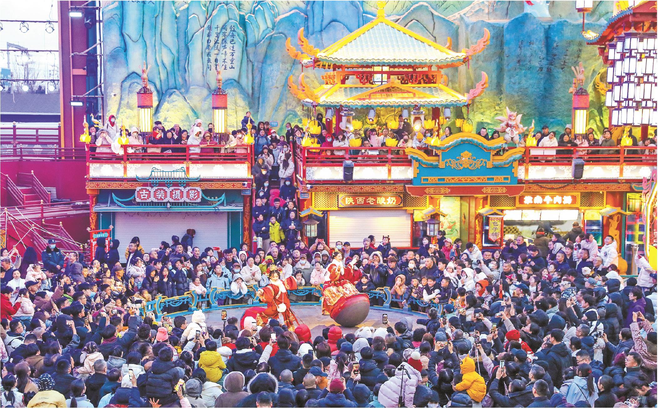 2月19日,青岛市城阳区明月·山海间不夜城主题街区,精彩表演轮番上演。(□记者 卢鹏 通讯员 张进刚 报道)