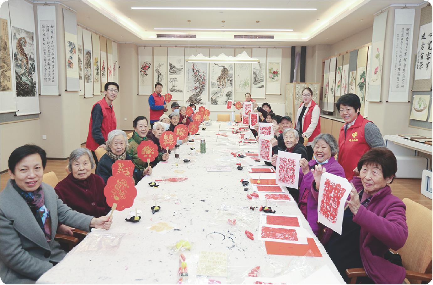 福彩志愿者与老人一起制作非遗手工作品