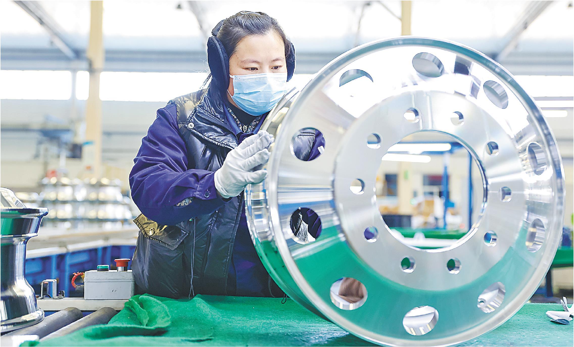 在聊城市茌平区山东骏程金属科技有限公司车间内,工人正在对汽车轮毂进行表面处理。新春伊始,聊城市各企业纷纷开足马力抓生产、赶订单,全力冲刺节前生产目标,力争一季度“开门红”。