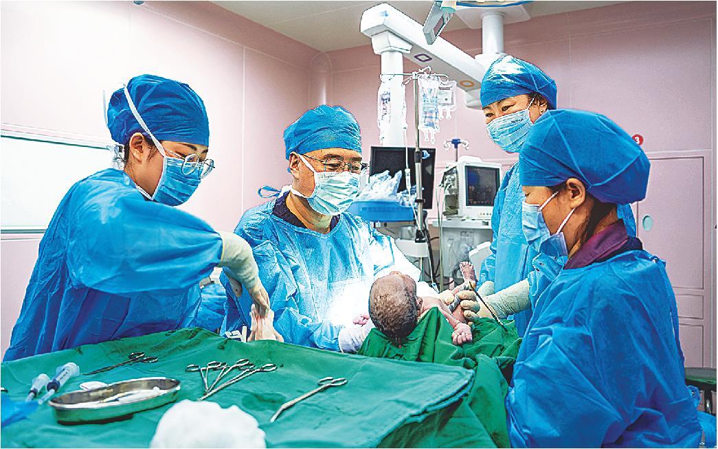 2月18日,大年初二,山东第一医科大学第一附属医院产科主任张志伟(左二)完成了他农历新年的第一台手术。迎着手术台上的灯光与张志伟温暖的笑容,一对龙凤胎顺利来到这个世界。初二到初三的36个小时,是张志伟今年春节假期持续时间最长的一班。“初二保底6台手术,初三约了5台。”张志伟掰着手指算着从这一天起一天半里他将迎接的新生儿数量,“今年春节假期,我接生的新生儿数量预计是去年同期的两倍还多。”