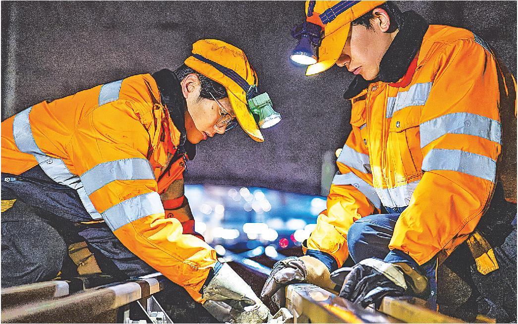 2月19日,正月初三。凌晨3点的城市已陷入沉睡,国铁济南局济南工务段济南线路车间铁路线路工刘禄博(左)和他的工友们正在检查钢轨。春运期间,火车跑得多,在岗的人数比平常少,铁路线路工的工作量也因此翻了倍。这天夜里,刘禄博三人要完成“中咽喉”段的巡检工作,检查的道岔数量达到32组。刘禄博告诉记者,一小时五十分钟的巡检时间里,走个近八千步稀松平常。