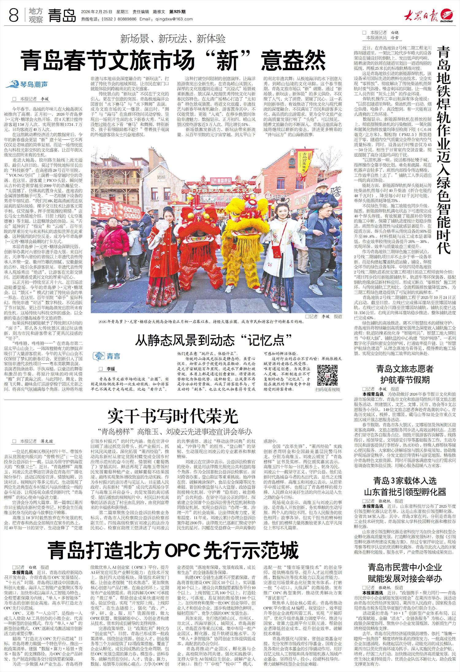 青岛文旅志愿者护航春节假期