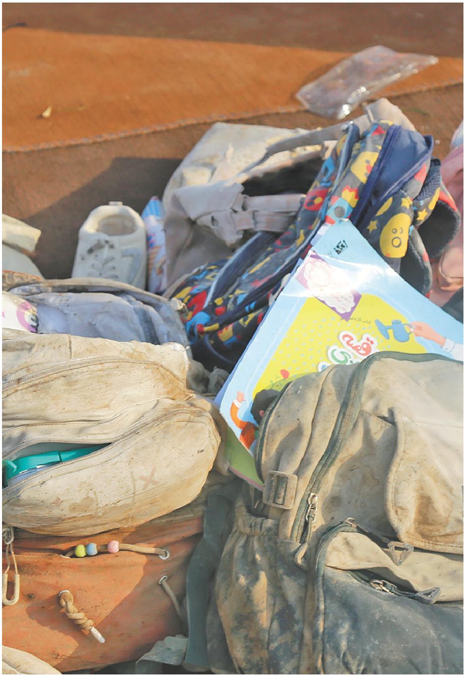 2月28日,在伊朗南部米纳卜市一所被美以军队袭击的小学,拍摄的学生书包。