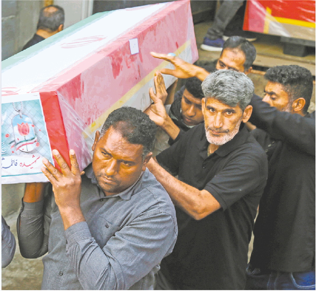 3月3日,在伊朗南部米纳卜市,人们为遭到美以空袭小学的遇难者举行葬礼。