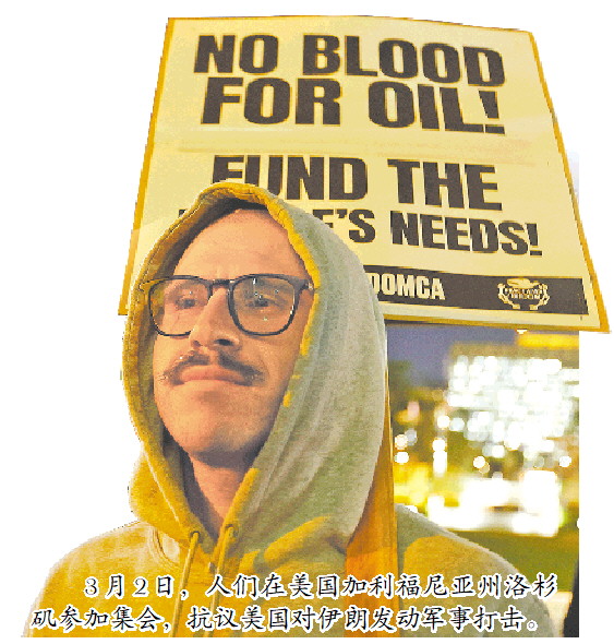 3月2日,人们在美国加利福尼亚州洛杉矶参加集会,抗议美国对伊朗发动军事打击。