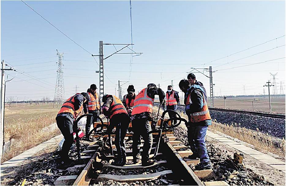 进入3月,为确保联维作业高效、安全、有序开展,中铁十五局集团轨道交通运营公司黄大分处联维项目党员先锋队挺身而出、冲锋在前,带领工务、供电、通信、信号各专业人员在天窗点内掀起攻坚热潮,筑牢能源保供“生命线”。图为工务专业人员在天窗点内进行线路人工捣固工作,精准整治线路暗坑、吊板等病害,全力提升轨道稳定性与平顺性。