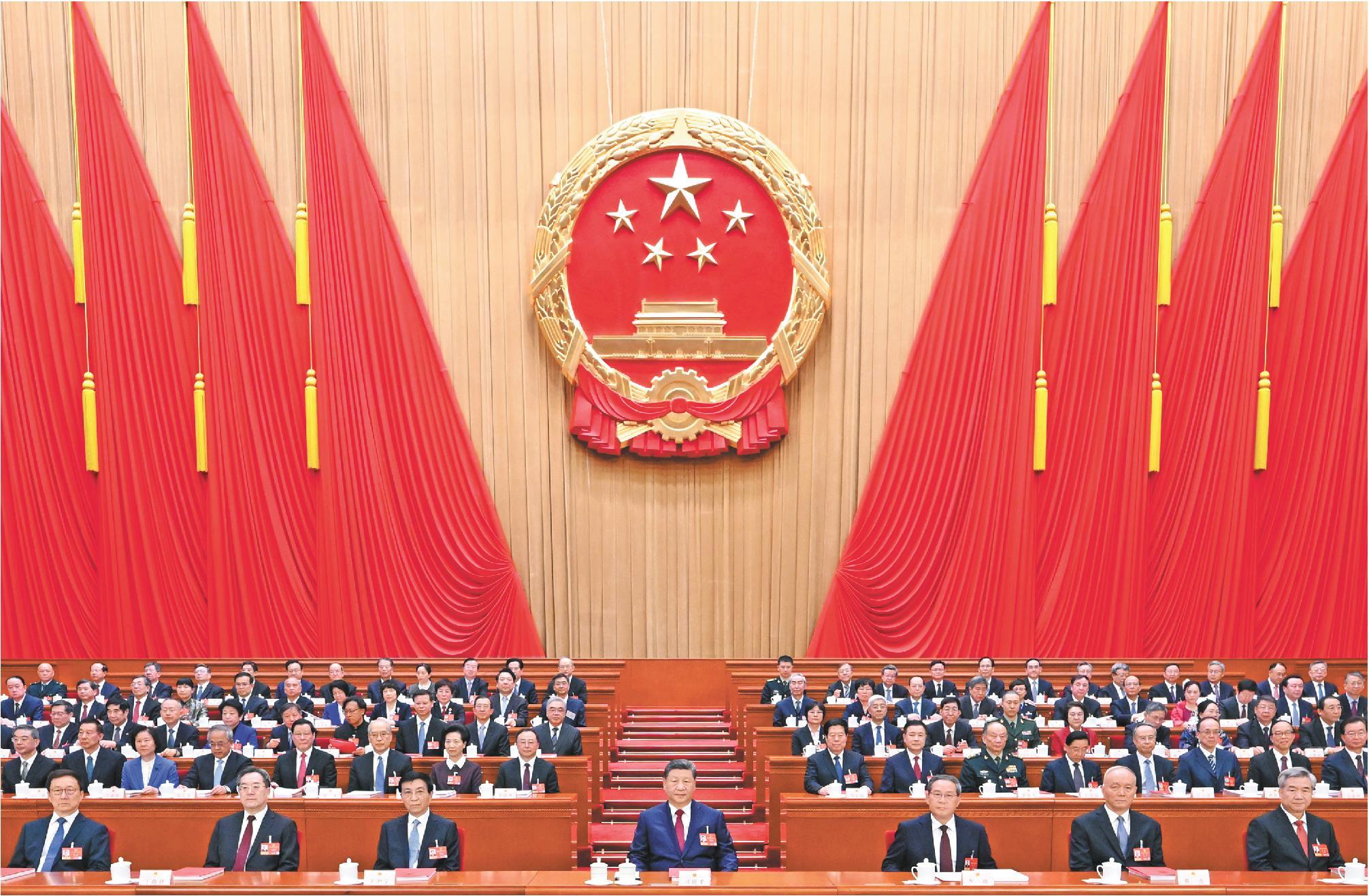 3月12日,第十四届全国人民代表大会第四次会议在北京人民大会堂举行闭幕会。大会主席团常务主席、执行主席赵乐际主持闭幕会并讲话。 □新华社记者 申宏 报道